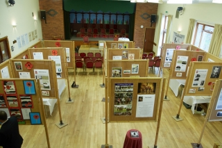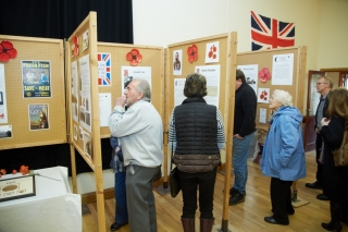 Saturday 10th November saw the culmination of many months of planning, researching, designing and printing for Welshampton and Lyneal Parish’s tribute to those who had fallen during the First World War. A small team of Parish Council representatives and local residents waited nervously within the Parish Hall to see if anyone would arrive to view the exhibition of profiles on the Gallant 35 and other related information. It was amazing to see the residents outside waiting for the official opening. During the day over 150 people visited the exhibition and many stayed to the end to see the Bonfire Committee’s Tribute in Words and Song. We hope the photos give a flavour of the occasion.